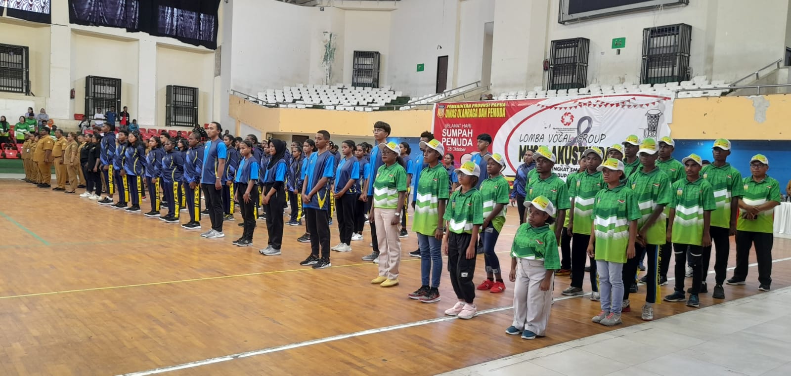 Pelepasan kontingen Peparpenas XI bersamaan dengan kontingen Popnas Papua yang digelar pada hari Selasa, (28/10/2025) di GOR Cenderawasih APO Jayapura. (Melviandres Pamanggori/Redaksi NL)