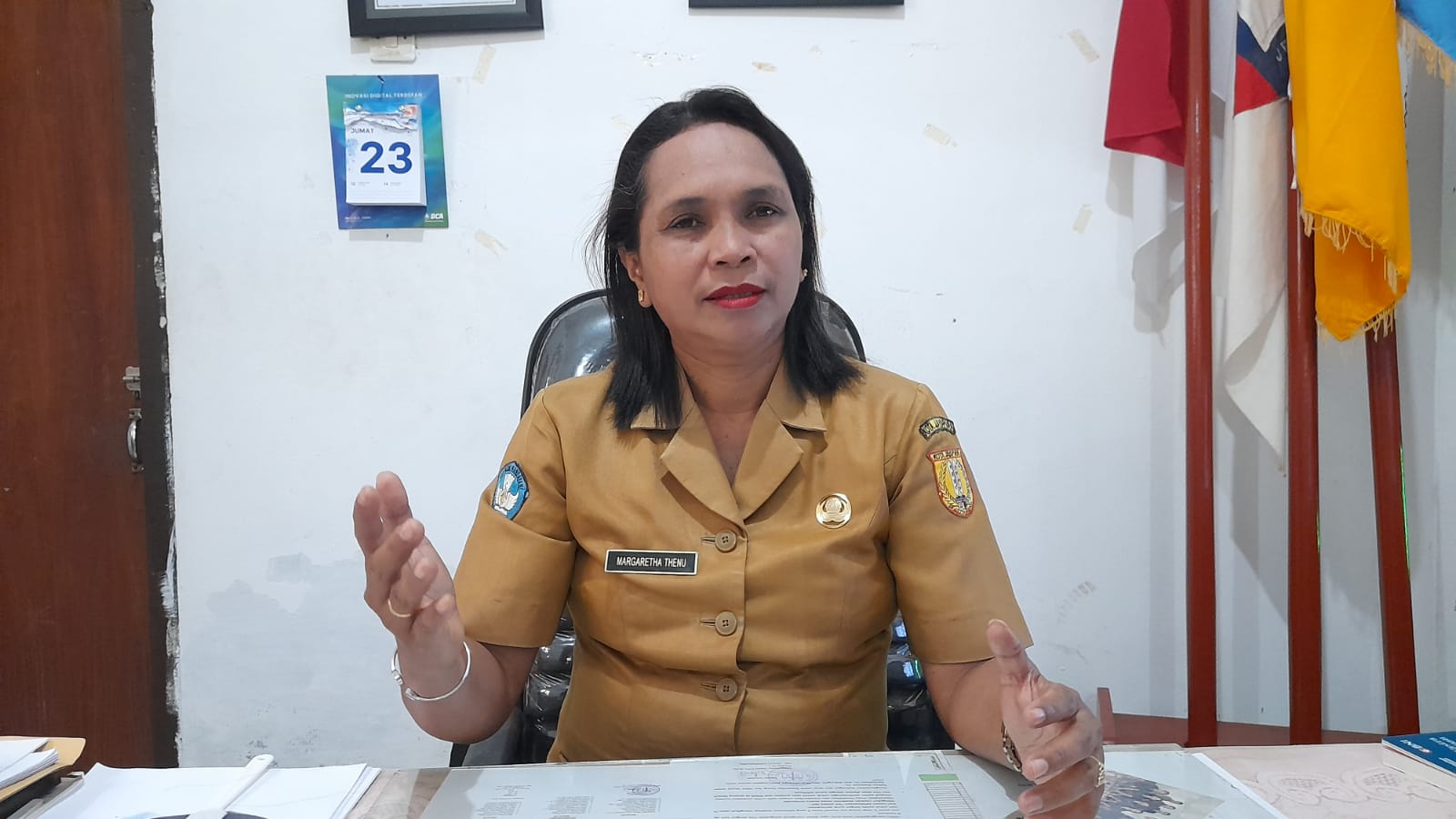Foto : Andika. Keterangan Foto : Kepala Sekolah SMP YPK Paulus Dok V Jayapura, Margaretha Thenu, S.Pd., M.Pd, saat ditemui di ruang kerjanya, Selasa (3/2/2026), terkait pelaksanaan Program Makan Bergizi Gratis yang berdampak positif bagi peserta didik.