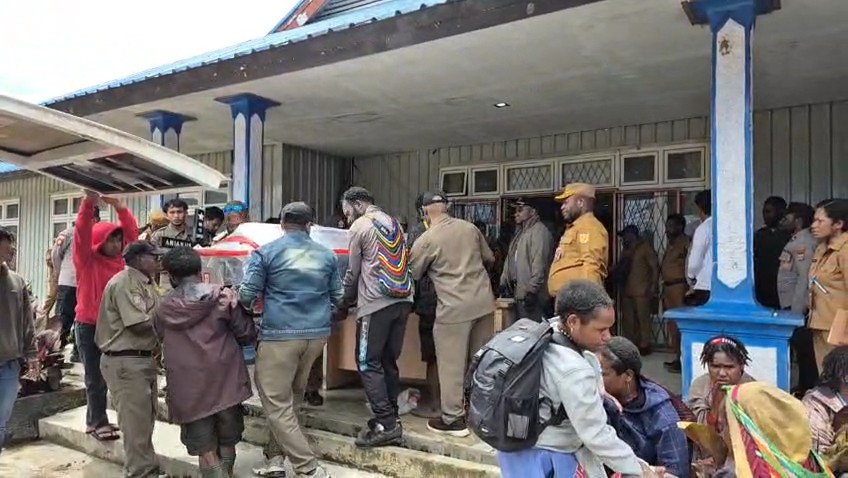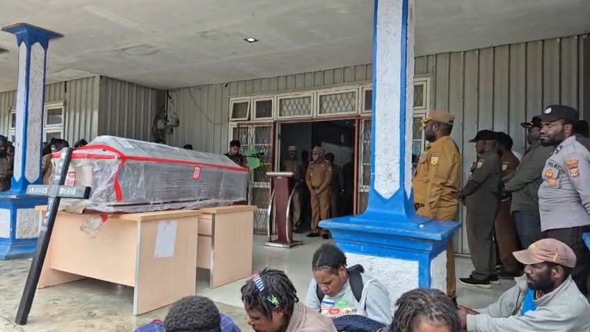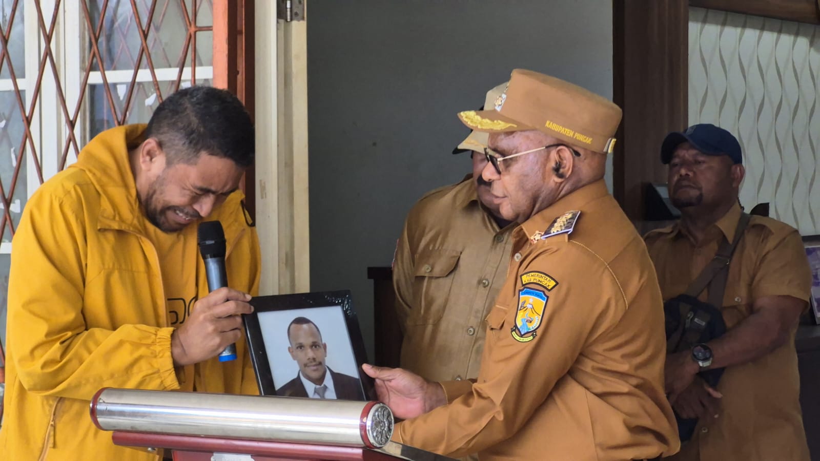Prosesi penyerahan jenazah berlangsung di kantor Bupati Puncak dan dihadiri jajaran pemerintah daerah, aparat TNI/Polri, para kepala OPD, kepala distrik, serta orang tua siswa Program Puncak Cerdas.