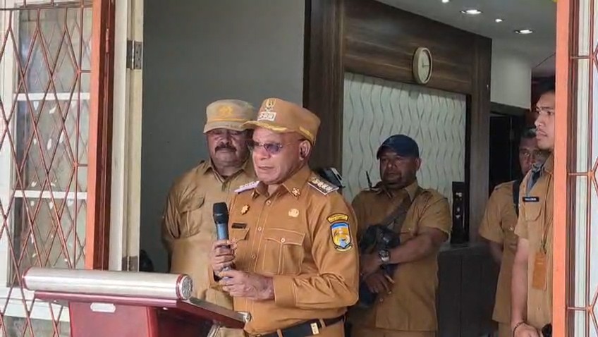 Dalam sambutannya, Bupati Elvis Tabuni menyampaikan turut berduka cita sedalam-dalamnya kepada keluarga almarhum.