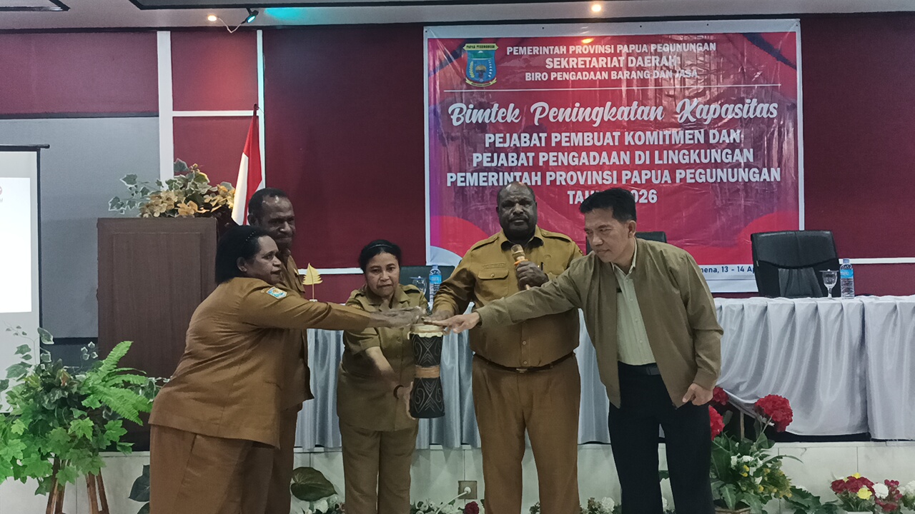 WAMENA, NOKENLIVE.com – Pemerintah Provinsi Papua Pegunungan menyoroti rendahnya tingkat kehadiran pejabat, khususnya Pejabat Pembuat Komitmen (PPK), dalam kegiatan Bimbingan Teknis (Bimtek) Pengadaan Barang dan Jasa (PBJ) yang berlangsung pada 13–14 April 2026 di Hotel Satrika Bayangkara, Wamena, Papua Pegunungan.