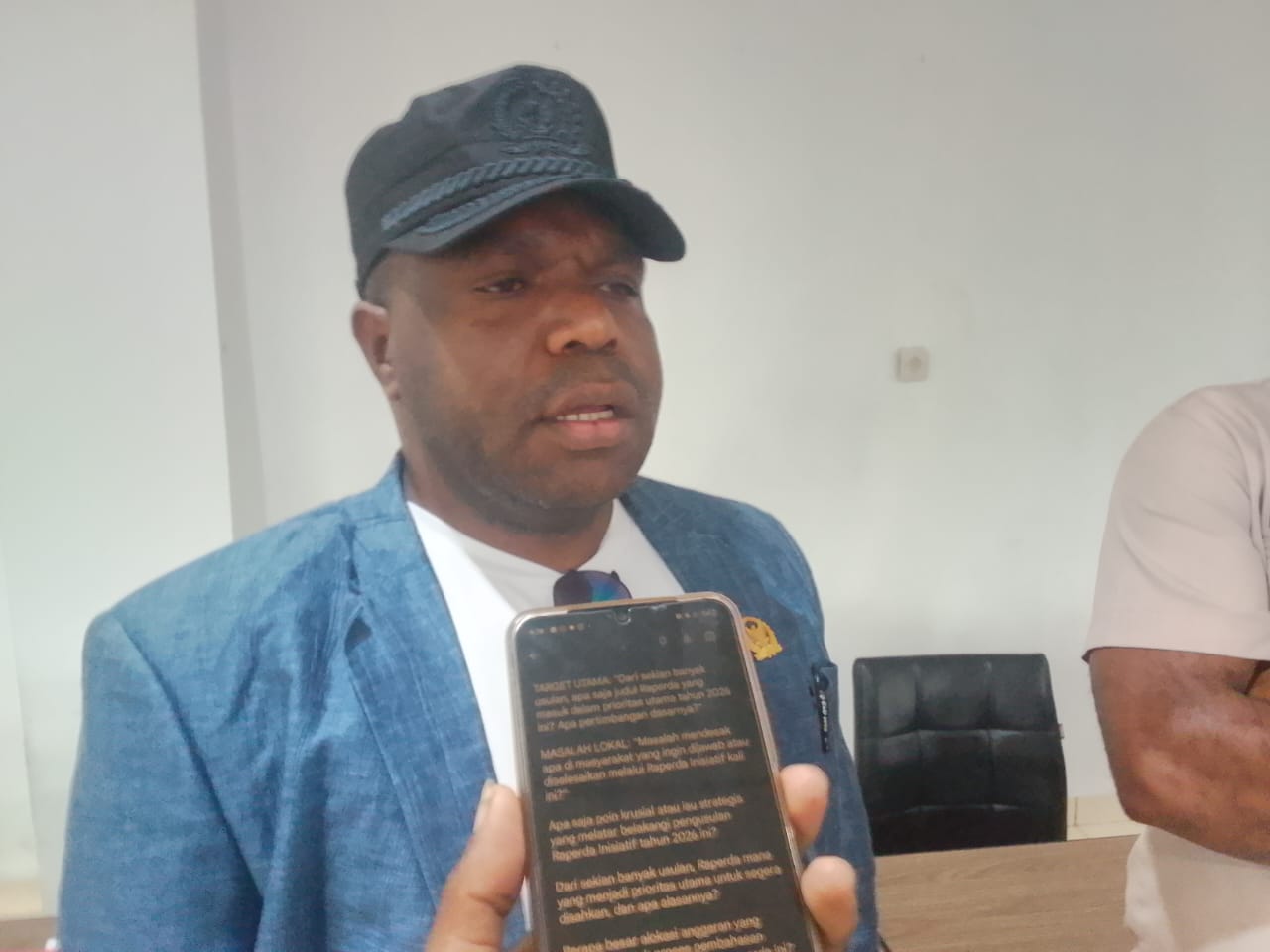 Menurut Yomi, tiga Raperda yang menjadi prioritas yakni perubahan nama jalan di wilayah Kota Wamena, keberpihakan terhadap ekonomi lokal, serta penertiban terminal transportasi di Jayawijaya dan jalur antardaerah seperti Wamena-Lanny Jaya, Wamena-Tolikara, Wamena-Mamberamo Tengah, dan Wamena-Yalimo.