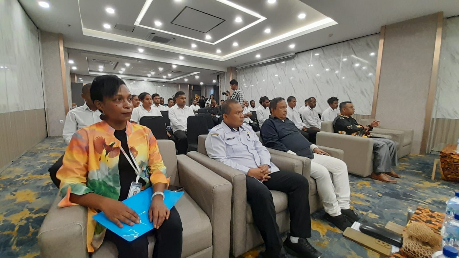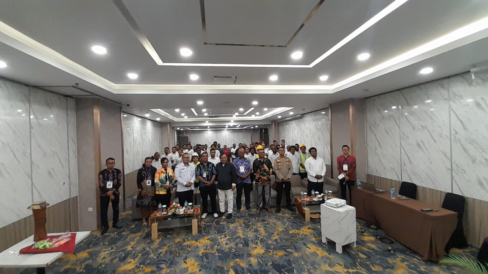 Ketarnagn Foto: Suasana Di Dalam Ruangan Pelatihan Di Hotel Grand Abe, Di Mana Para Pemuda-Pemudi Orang Asli Papua (OAP) Menyimak Materi Dengan Serius Guna Meningkatkan Kualitas SDM Di Bidang Konstruksi Dan Pertambangan.