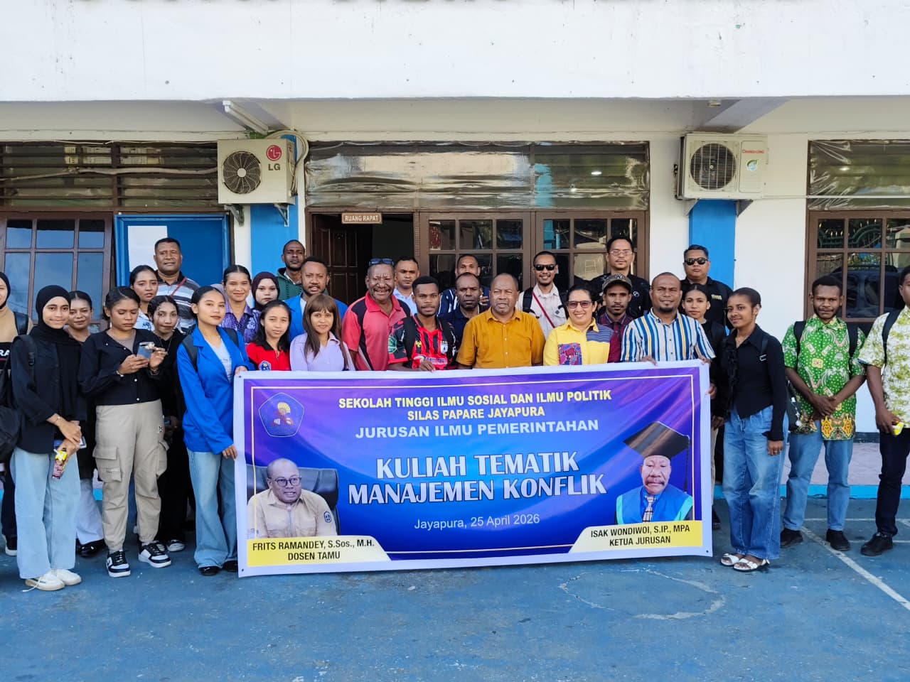 JAYAPURA, Nokenlive.com – Sekolah Tinggi Ilmu Sosial dan Ilmu Politik (STISIPOL) Silas Papare Jayapura menggelar kuliah tematik bertajuk manajemen konflik bagi mahasiswa, Sabtu (25/4/2026). Kegiatan yang berlangsung di kampus STISIPOL tersebut menghadirkan Kepala Komnas HAM Perwakilan Papua, Frits Ramandey, sebagai narasumber sekaligus dosen tamu.